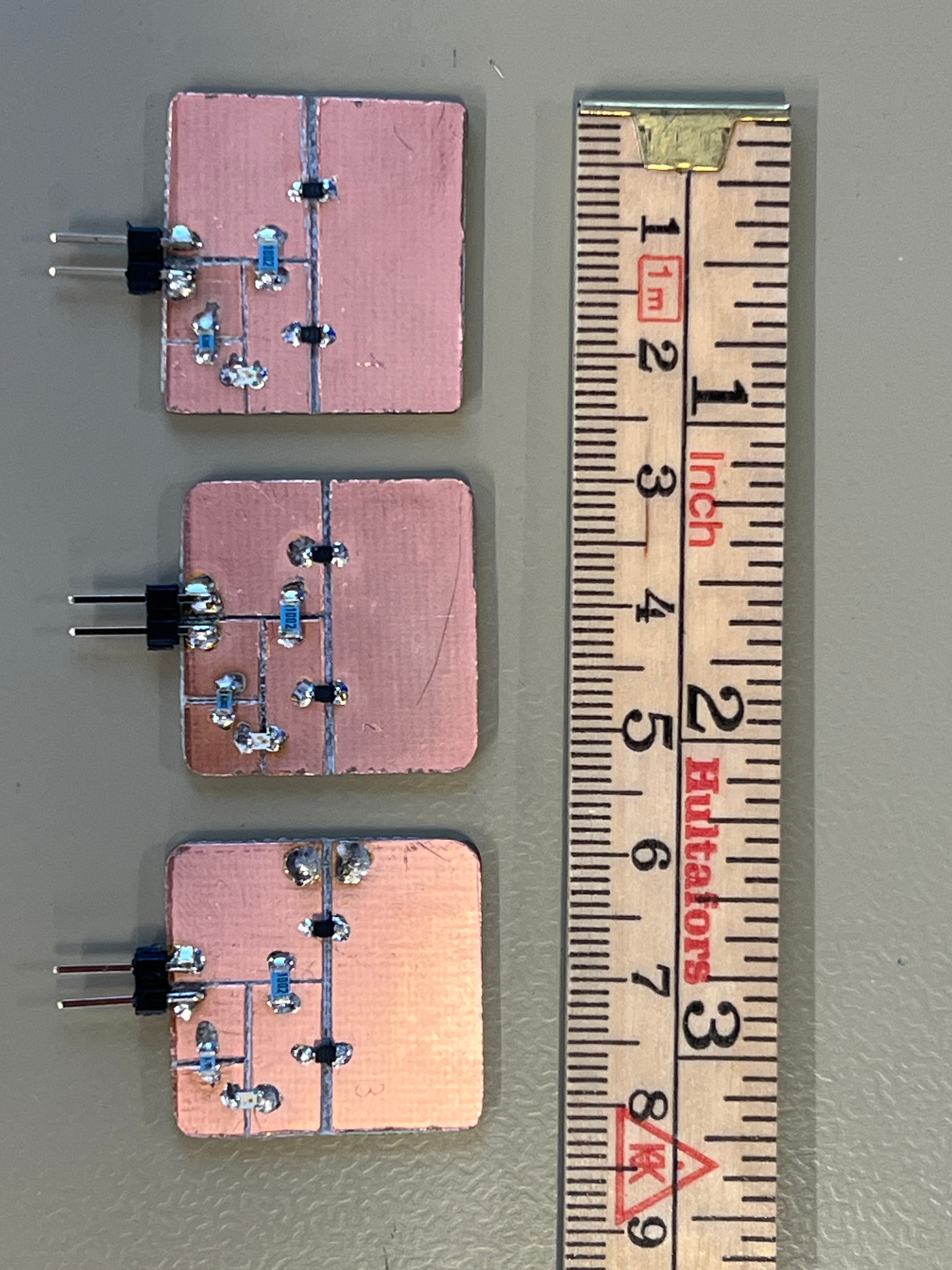 I have soldered together a couple of units based on the latest video in the series, on an etched copper plate.